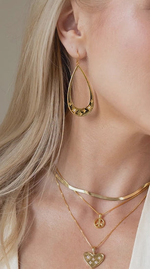 Ready to elevate your look? Complete your accessories lineup with the Astra Earrings, because style is not just seen, it’s felt. Lightweight statement earrings, etched with tiny stars, and two cubic zirconia in each of the larger stars. The Astra have the perfect shimmer to capture attention and make you shine!