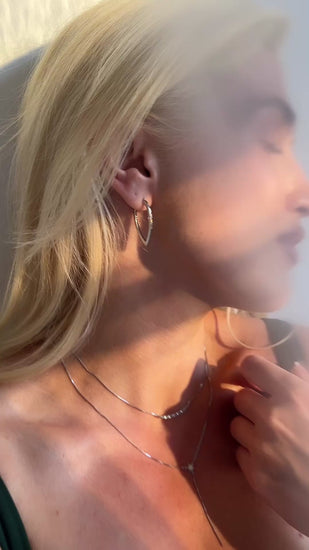 A modern take on the classic hoop, these sleek marquise-shaped earrings add subtle elegance to any look. The Gia Medium Earrings feature a refined silhouette with five sparkling CZ stones set halfway down the hoop, catching the light beautifully with every movement. Perfect for everyday wear or dressing up, these versatile hoops are great on their own or wear them layered with other earrings.