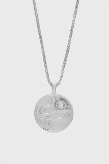 Zoom Sarah Mulder Jewelry coin style pendant picturing a snake with cubic zirconia stone setting